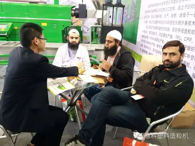 德科塑机于2016/4/25-4/28在上海新国际博览中心成功展出我司新型单双螺杆混合造粒机,各新老客户亲临现场参观,