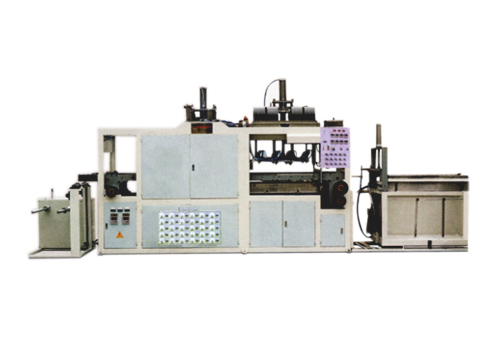 XS-660/1120型全自动高速吸塑成型机,集机、电、气一体化设计,采用垂直气缸拉片,缩短拉片占用时间,降低电能消耗,保证成型质量。是以送片、加热、成型、冷却、脱模、切断一次性完成的全自动、高效塑料片材成型设备。