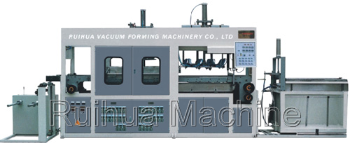 XS-560/900型全自动高速吸塑成型机,集机、电、气一体化设计,采用垂直气缸拉片,缩短拉片占用时间,降低电能消耗,保证成型质量。是以送片、加热、成型、冷却、脱模、切断一次性完成的全自动、高效塑料片材成型设备。