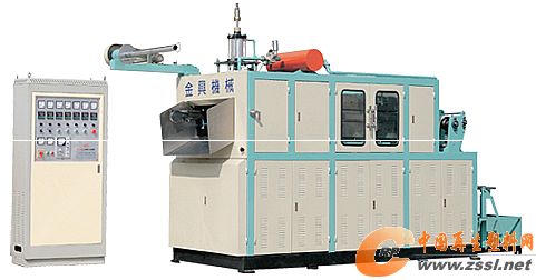 一、性能特点及用途 RCX-660型全自动凸轮制杯机,是结合我公司多年的机械制造经验研制的新一代设备,它采用稳定的凸轮系统与气动技术联合控制,具有运行稳定、噪音小、锁模力强、成品档次高等优点。它主要由成型机、放料架、收料机和电控屏等部分组成。 1、该机自动化程度高,生产速度快。通过安装不同模具可生产不同制品,达到一机多用的目的。 2、采用进口名牌电器元件、气动元件,运行稳定,质量可靠,使用寿命长。 3、模具设计先进独特,将热塑性塑料片材加热置于模具上,柱塞拉伸、压缩空气加压使片材紧贴模腔成型,经剪切后自动吹出制品。整机结构紧凑,把加压、成型、剪切、冷却、成品吹出等功能集于一模,使产品流程短,成品档次高,符合国家卫生标准。 该机适用于生产PP、PE、PS、HIPS和其它塑料片材的制品。将塑料片材加热至一定温度正压成型,制成各种杯、盒、碗等薄壁容器,如牛奶杯、果冻杯、雪糕杯、一次性饮水杯、方便面碗、快餐盒、食品盒等。