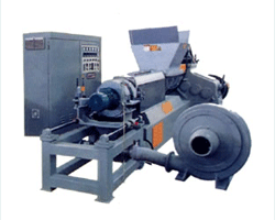 喂料机构采用锥形双螺杆挤出造粒,吃料能力强。特别适用于直接经捏炼机或密炼机混炼的块状物料挤出造粒。