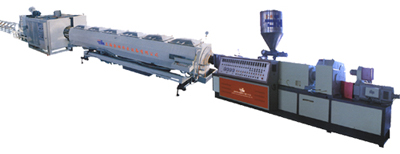 GF系列塑料管材生产线主要用于生产农用给排水、建筑给排水、线缆敷设等方面和各种管径、壁厚的塑料pvc管材。该机组由锥形(平行)双螺杆挤出机、真空定型台、牵引机、切割机、翻料架等组成。螺杆挤出机及牵引机采用进口交流变频调速装置,真空泵及牵引电机均采用优质产品。牵引机有二爪、三爪、四爪、六爪等牵引方式。可选用锯片切割式或行星切割式,另带计长仪及增厚装置,机组性能可靠、生产效率高。本公司可以根据用户的要求,配备专用装置后生产内壁螺旋管、内壁空心管和芯层发泡管机组更换挤出机,可以生产pp、pe、abs、及ppr、pex、硅芯管等其它物料管材。行星切割机采用全自动电脑数控,具有操作方便,性能可靠等优点,达到国际领先水平