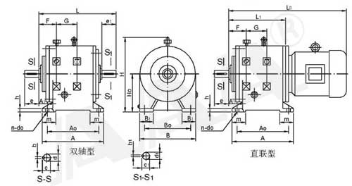 >>本系列减速机有直联式和双轴式二种,其输出轴结构型式为普通圆柱形轴伸,联轴器应选用TK型弹性块联轴器或具有一定位移量的其他弹性联轴器。