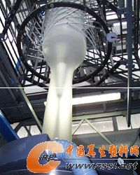 稳泡架的导辊由POM材料制成的滚珠撺成. 膜泡经人字板由牵引辊牵引;