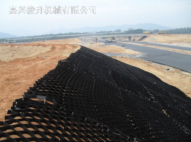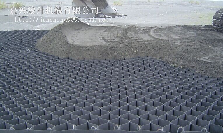 骏升塑料土工格室生产线可生产厚度为0.8-3mm,光滑或压花面,有孔或无孔的土工格室。 土工格室系统可被填充很多种类的材料:集料,混凝土,砂,土壤等。 土工格室被广泛用于土壤稳定化,以帮助提高基础建筑材料的性能和侵蚀控制处理能力。因此,它主要用于水土流失控制,负载支持,边坡防护,通道保护领域,挡土墙,地基加固及护坡的应用程序。